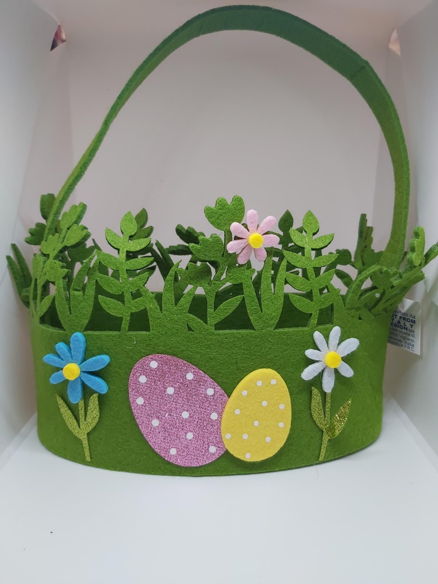 cestino in panno decorato con uova