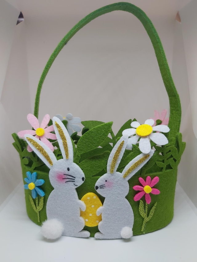 cestino in panno decorato con uova e coniglietti
