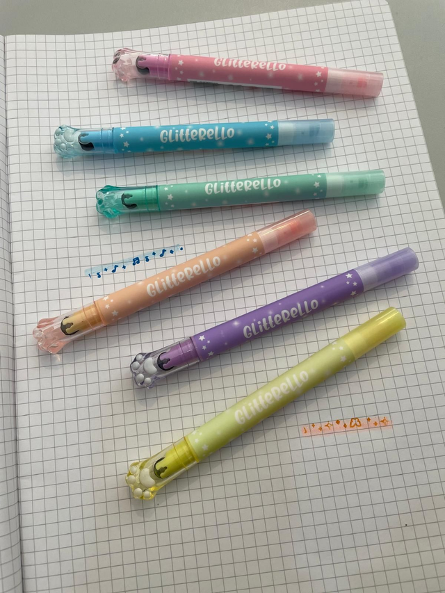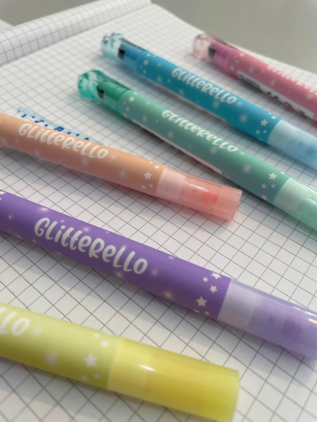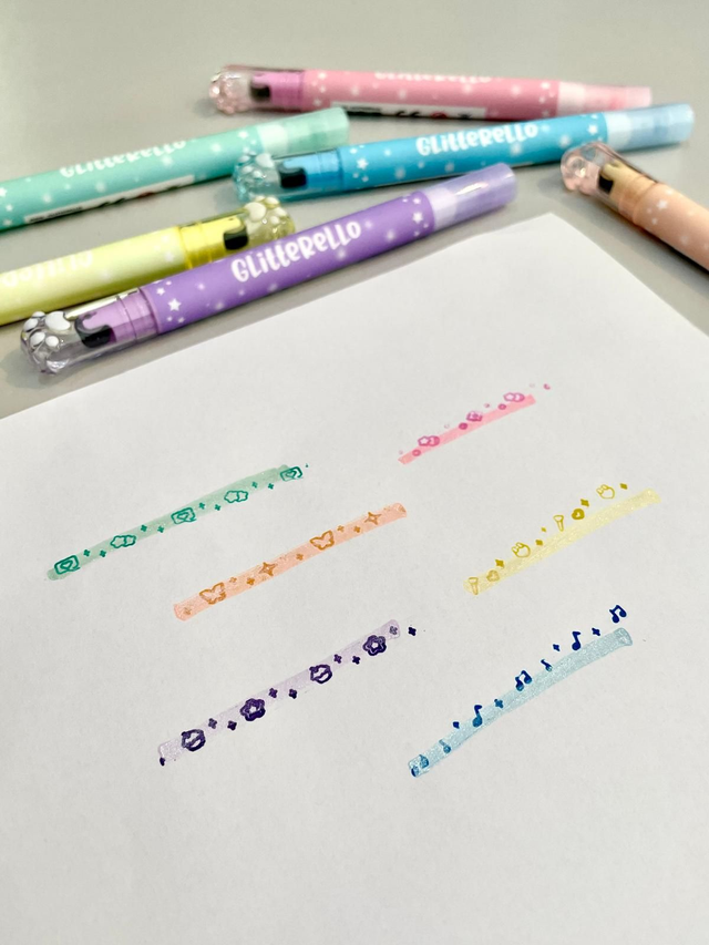 GLITTERELLO da una parte evidenziatore glitterato e dall'altra hai un timbrino a rullo!