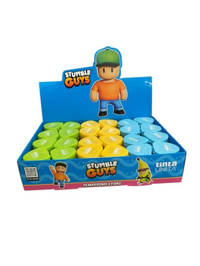 Temperino a 3 fori con contenitore della nuova linea scuola “Stumble Guys” by TintaUnita
